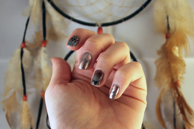 Ce nail art n'est pas si compliqué à réaliser. Le plus difficile est de veiller à ce que je top coat ne bulle pas une fois posé sur la plume (ce que je n'ai pas réussi à faire). Pour l'enlever, un coup de dissolvant et ça part tout seul !